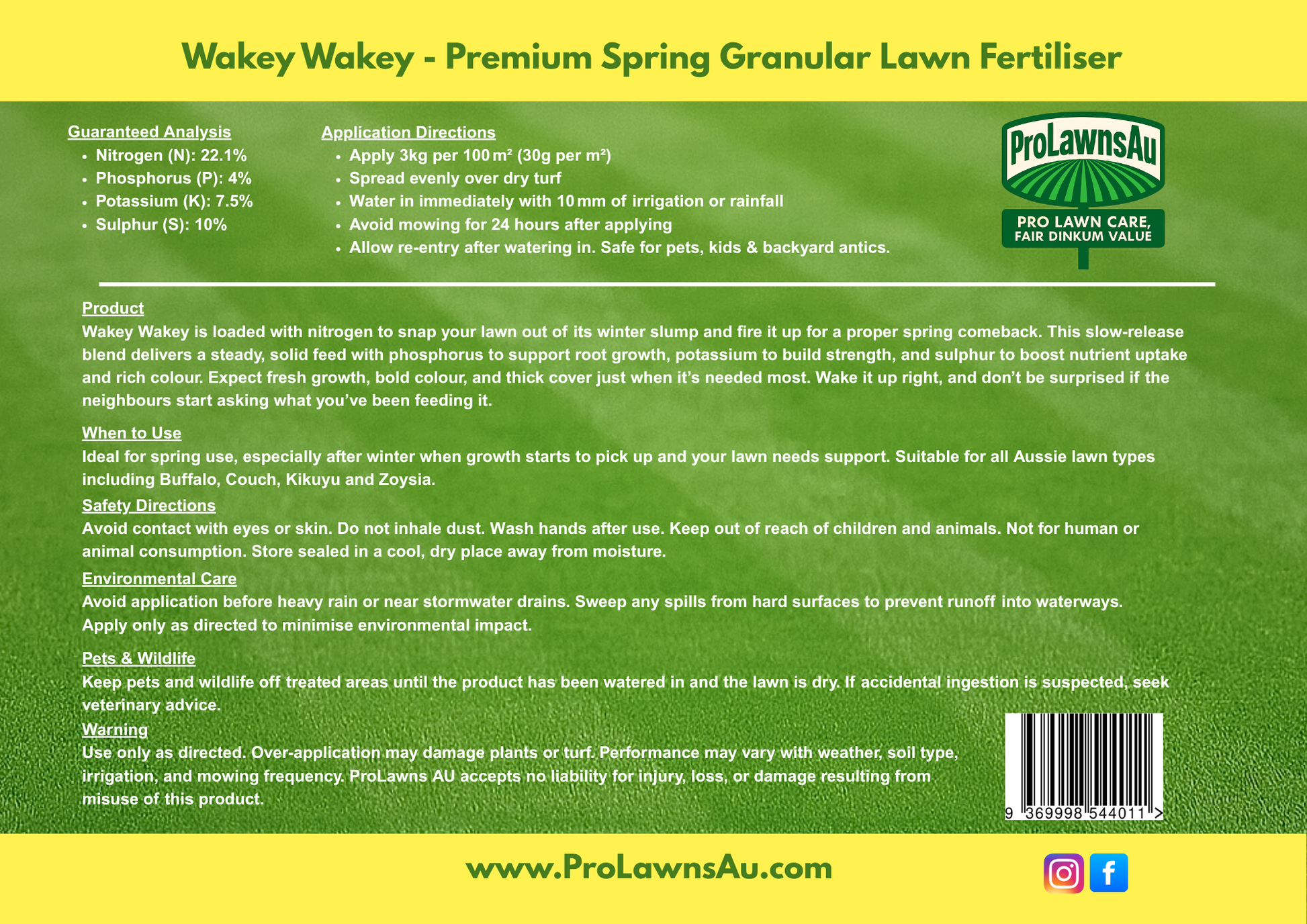 The caffeine hit your lawn’s been hanging out for. Packed with nitrogen to kickstart fresh green growth, phosphorus for solid roots, and potassium for toughness, Wakey Wakey shakes your grass out of its winter nap and gets it ready for the warm months ahead. It’s coffee for turf—minus the keep cup.